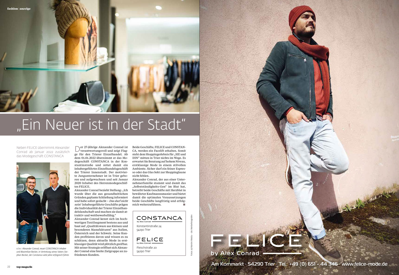Neben FELICE übernimmt Alexander Conrad ab Januar 2022 zusätzlich das Modegeschäft CONSTANCA